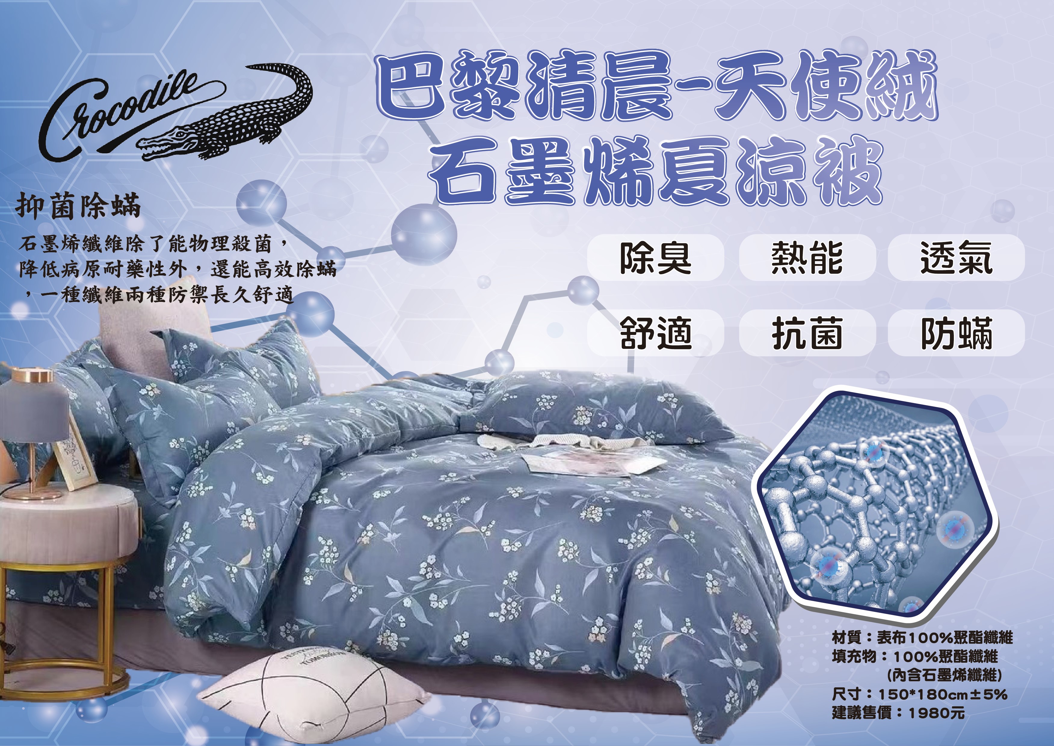 首頁 > 毯 被 類 > 涼被 > Crocodile 石墨烯夏季涼薄被(5尺) 涼被 Crocodile 石墨烯夏季涼薄被(5尺) NT$1980 NT$800 簡介 CR-561/石墨烯夏季涼薄被 規格 150*180cm±5% 數量 -+ 加入購物車 直接結帳 詳細說明 ▎商品介紹 ▎運送方式 回上一頁