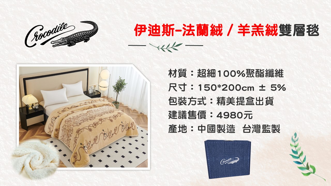 首頁 > 毯 被 類 > 毛毯 > Crocodile 伊迪斯-法蘭絨羊羔絨雙層單 毛毯 Crocodile 伊迪斯-法蘭絨羊羔絨雙層單 NT$4980 NT$1380 簡介 CR24A1/法蘭絨羊羔絨雙層單 規格 150*200cm±5% 數量 -+ 加入購物車 直接結帳 詳細說明 ▎商品介紹 ▎運送方式 回上一頁